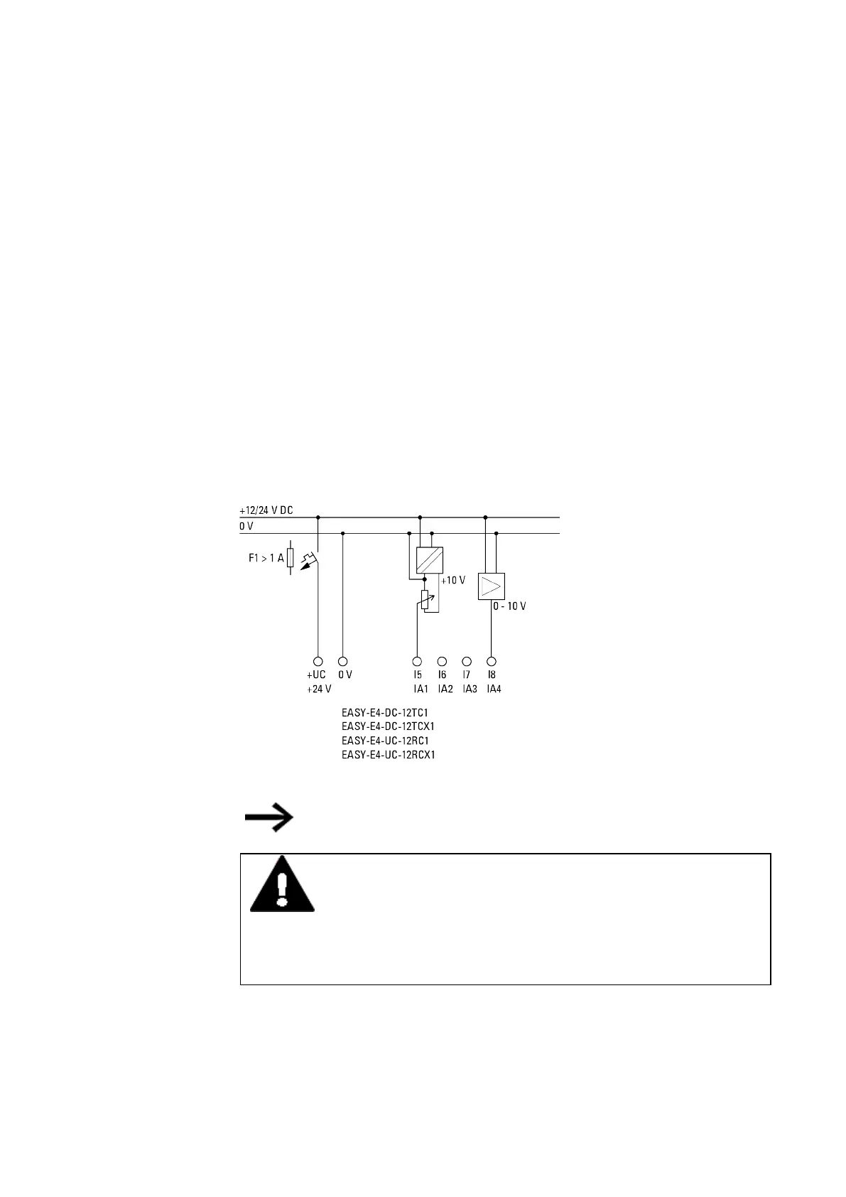 10 V via inputs I5, I6, I7, and I8 on the EASY-E4-... base device.