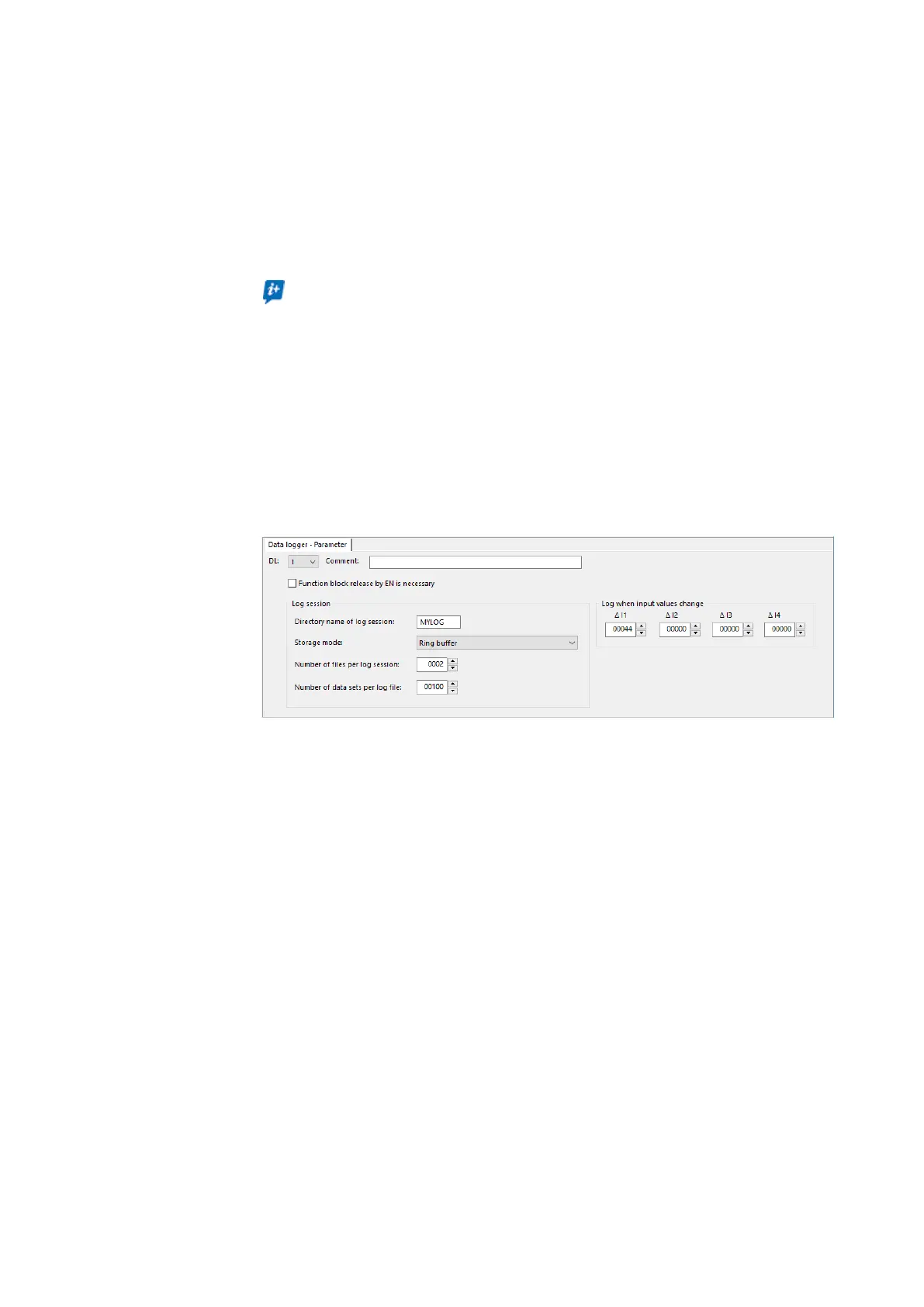 In this example, for the ring buffer, 2 files with 100 data sets are defined for a log ses-