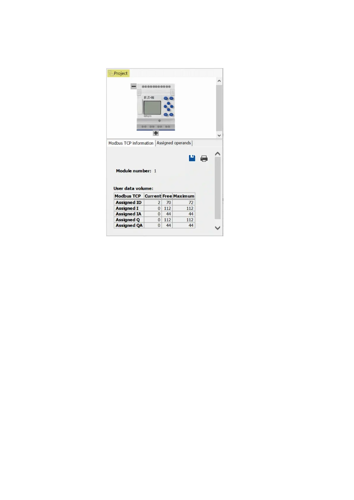 Modbus TCP server option under theProject view/Modbus Server tab and the data