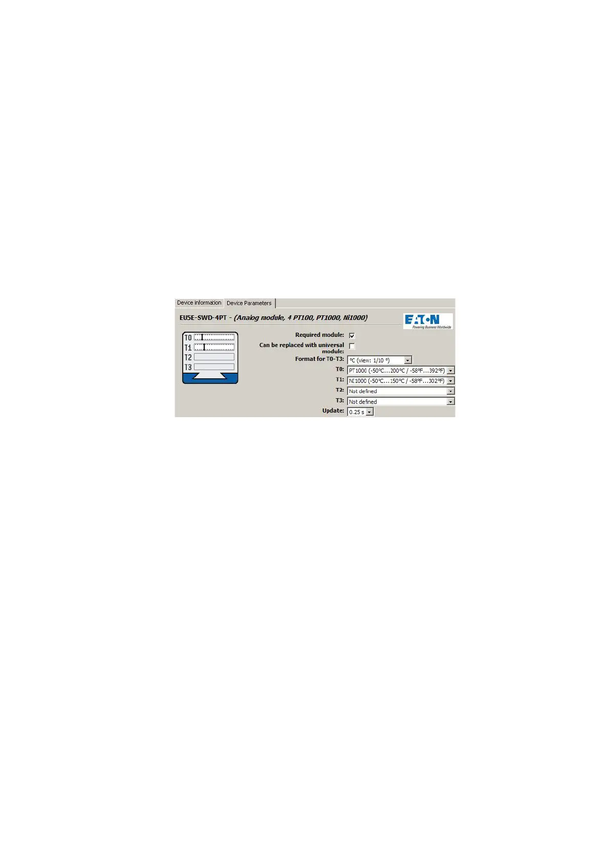 Figure 24: Device parameters of EU5E-SWD-4PT SmartWire-DT temperature module in