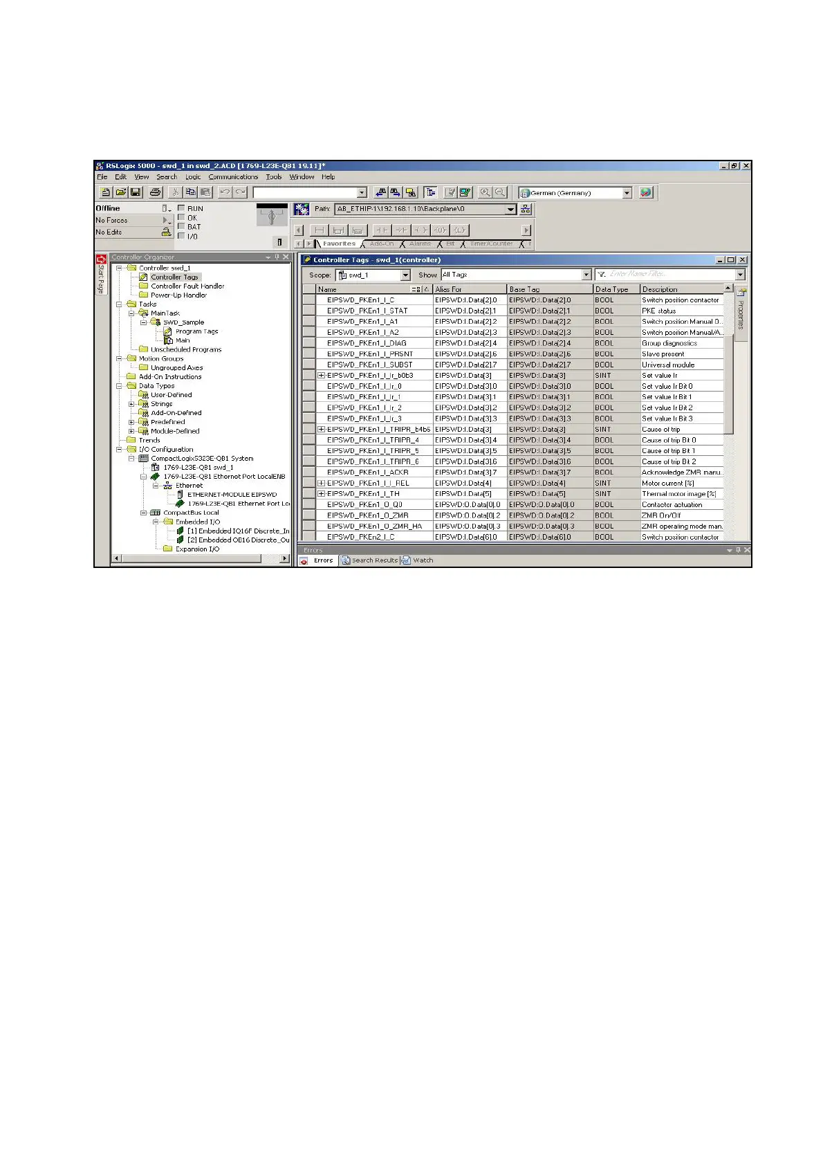 Figure 31: Tag list containing all of the SWD line's I/O data in the RSLogix 5000 V19.01.00
