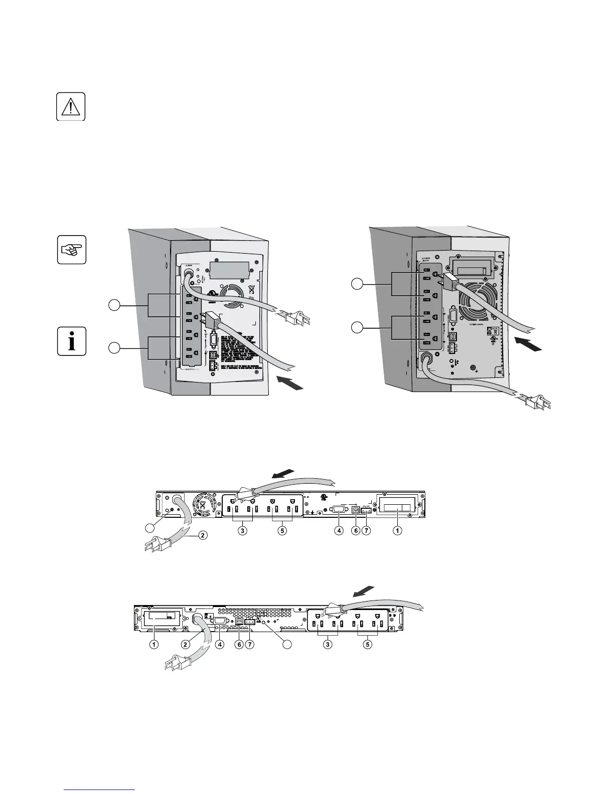 2. Connect the loads to the UPS outlets as shown. It is preferable to connect the priority loads to the two outlets