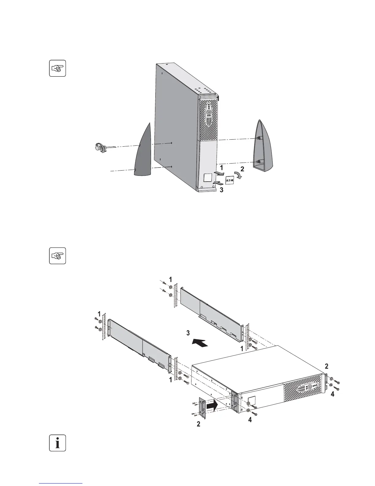 Note. The two supports for the upright position are used on the RT 2U version only.