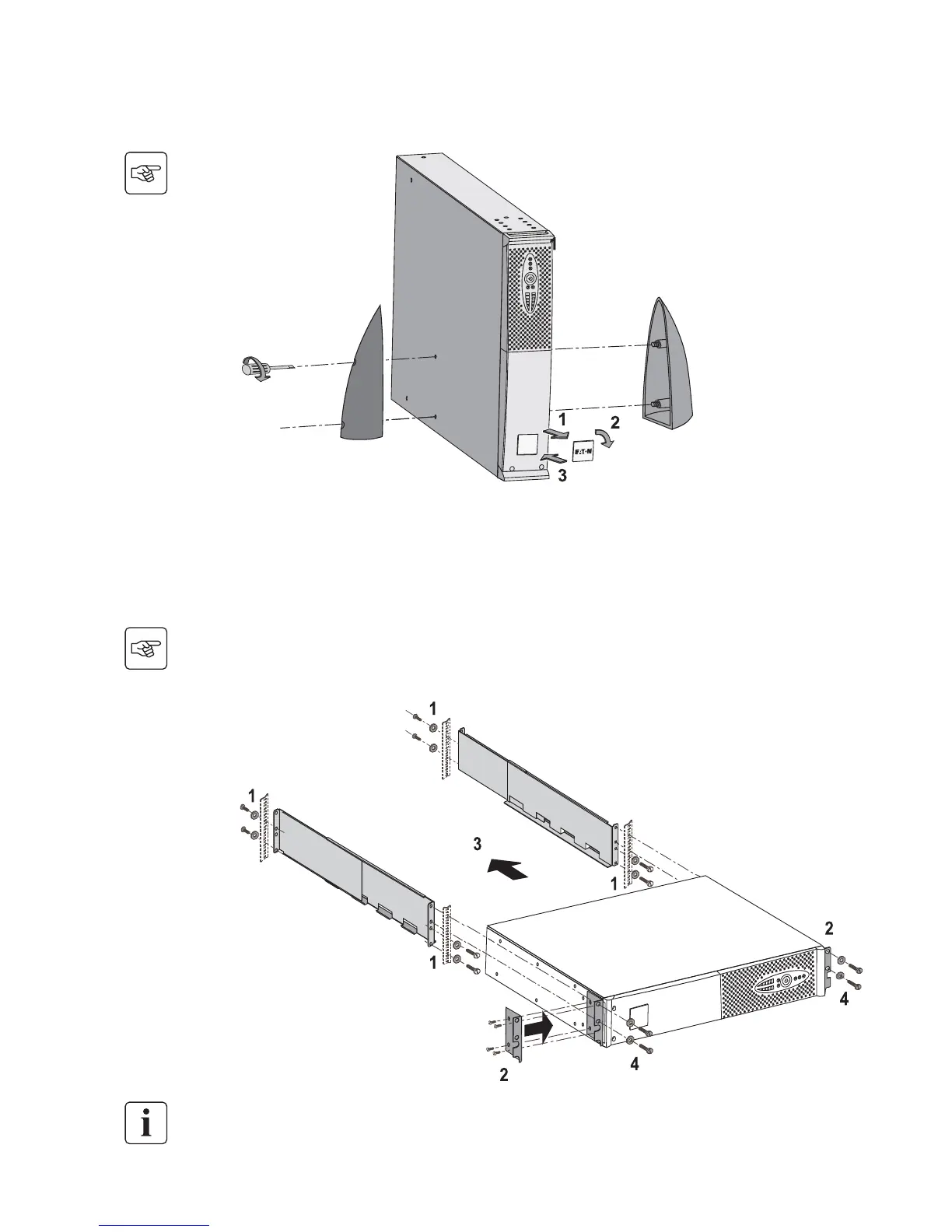 Hinweis: Die Stützfüße für Toweraufstellung werden nur bei den Modellen RT 2U montiert.