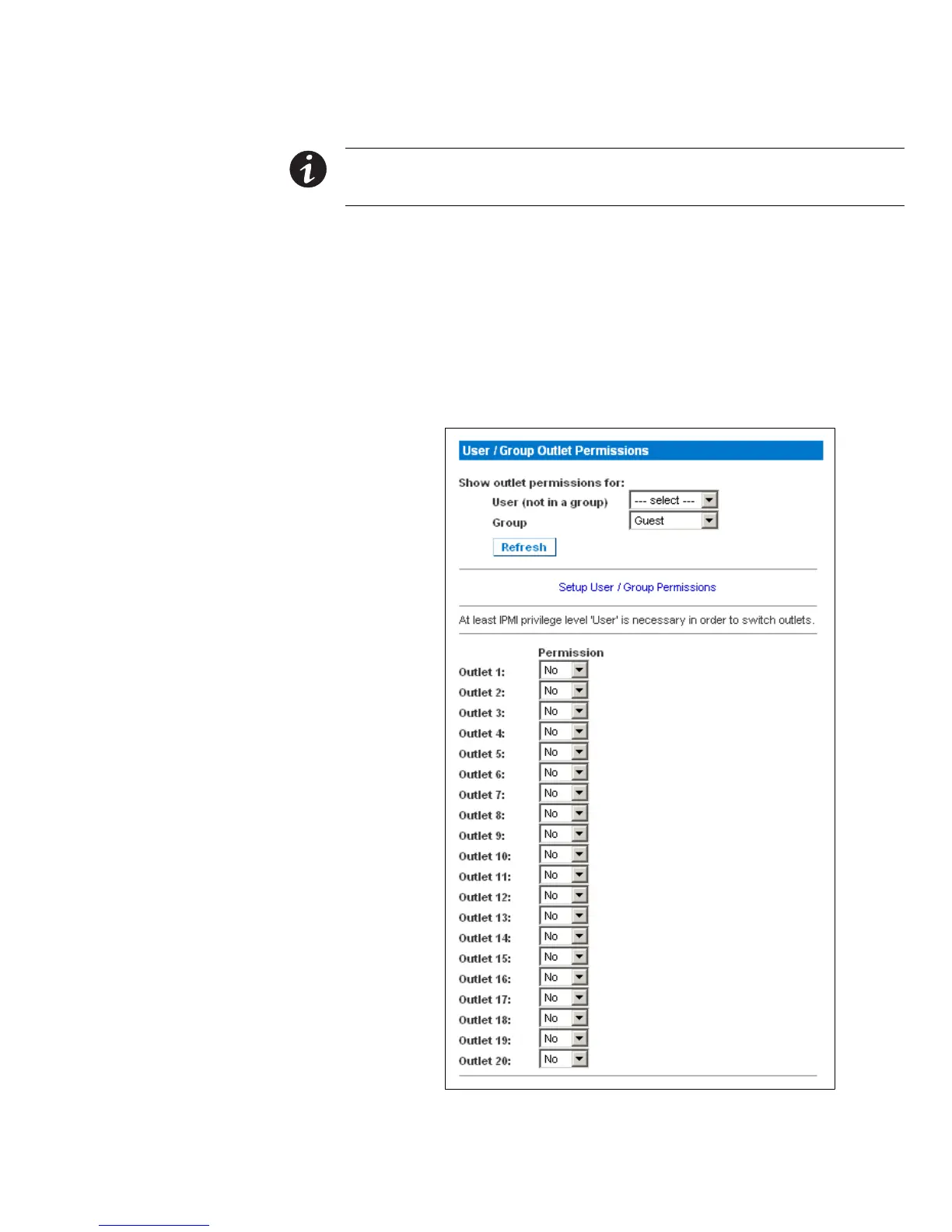 Figure 38. User/Group Outlet Permissions Page