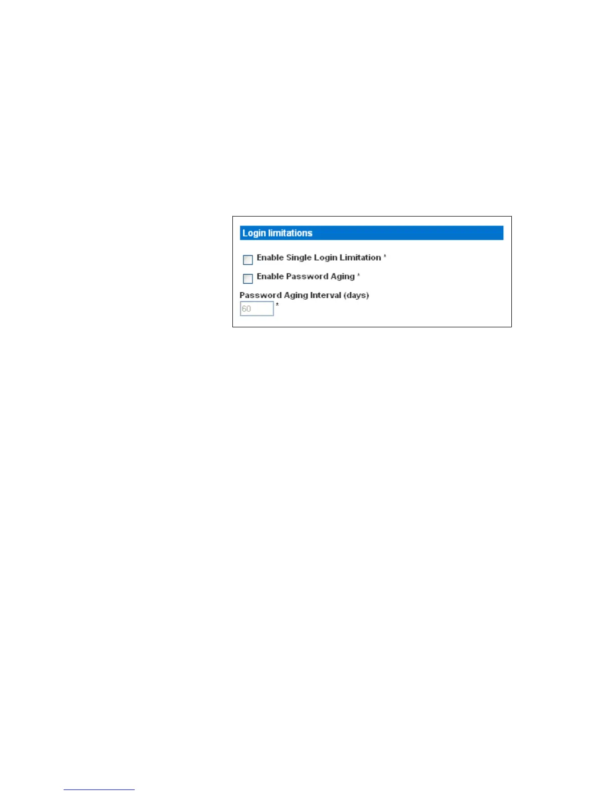 Aging check box, and then enter a number of days in the Password Aging Interval