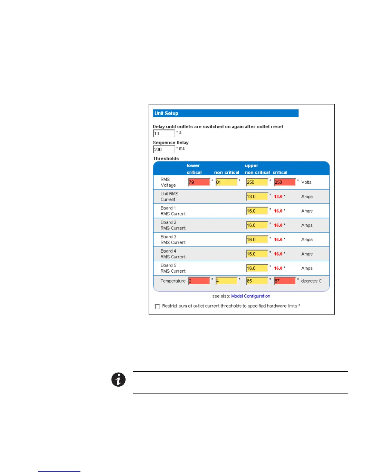 4. Set the RMS voltage, current, and temperature thresholds for the ePDU in the