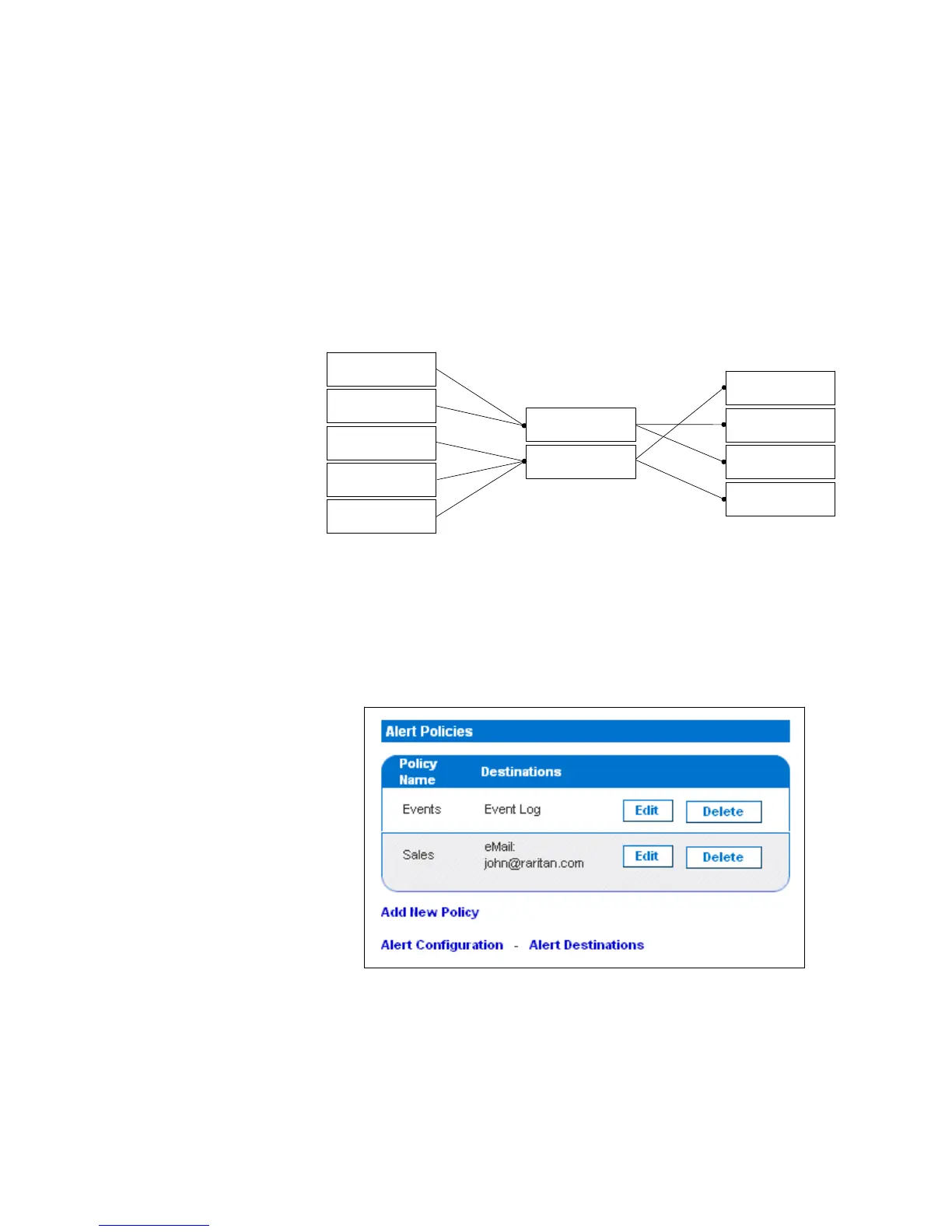 The diagram below illustrates the way policies associate events with destinations. In