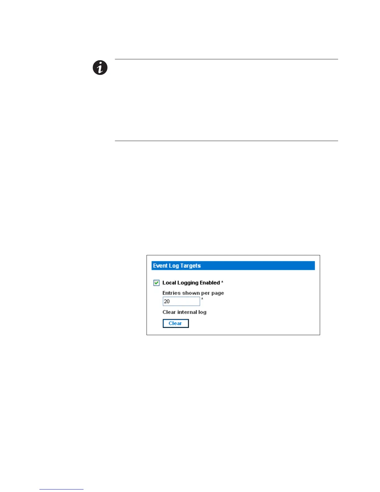 2. The local event log is enabled by default. To turn it off, clear the Local Logging