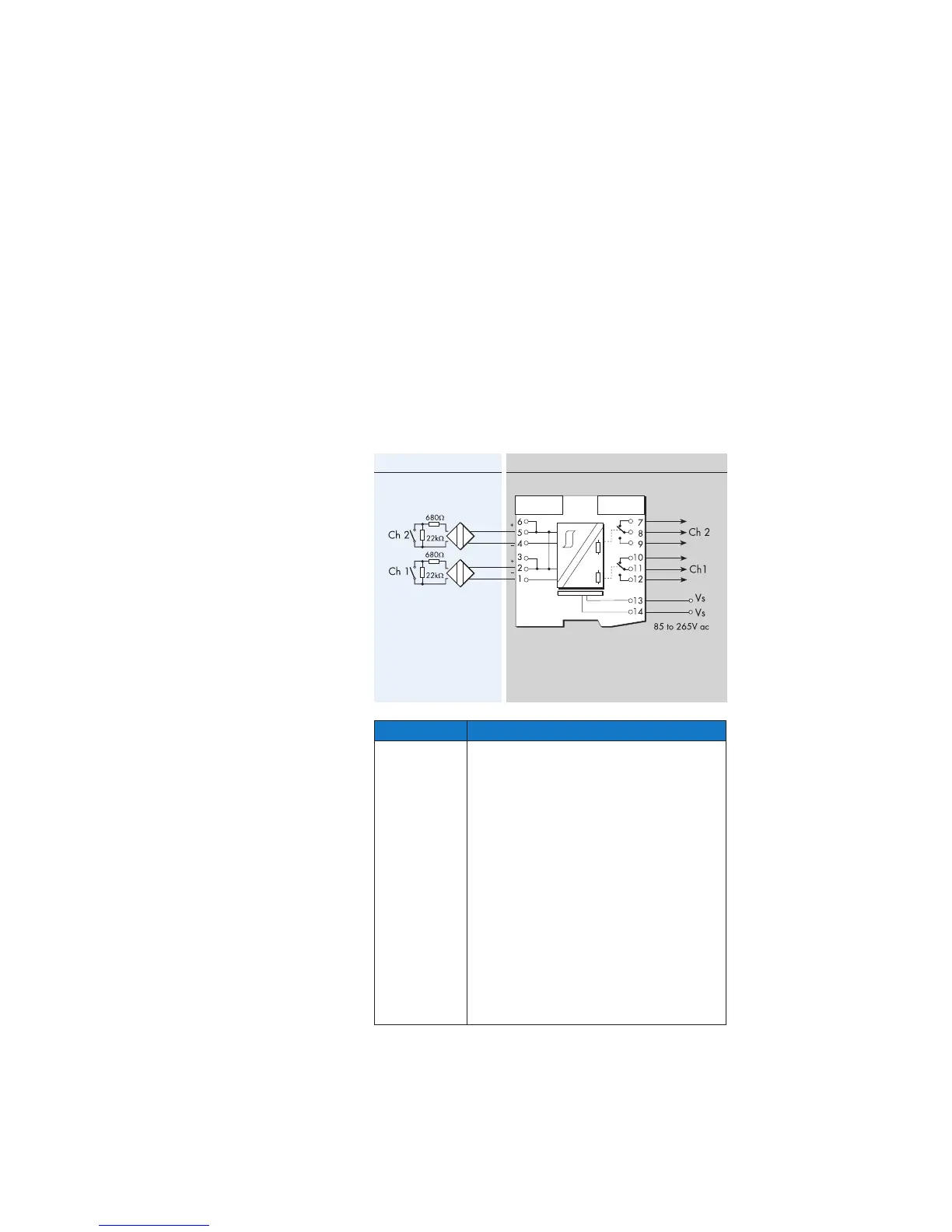 On each channel, input line faults (open- or short-circuit) are indicated by an LED and the