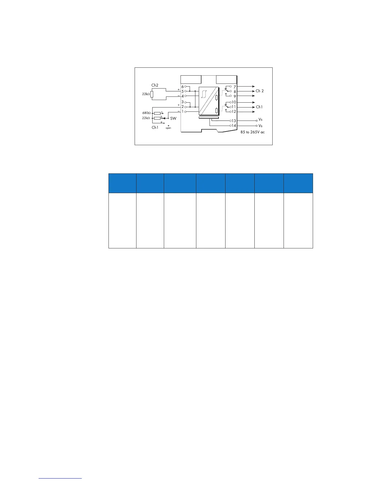of the output contacts for each channel in turn (with a 22kΩ resistor connected to the other