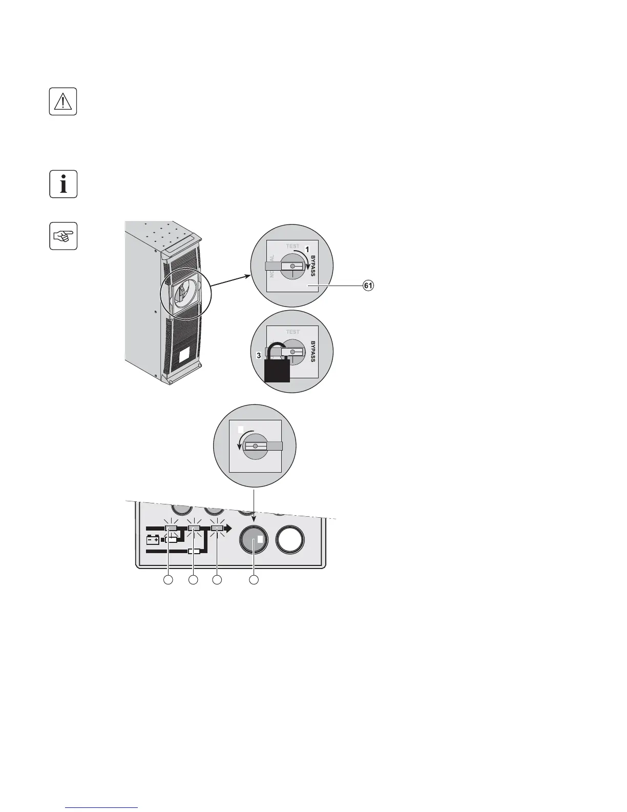 Before any action on the manual bypass (61) located on the ModularEasy module front panel, always check that the