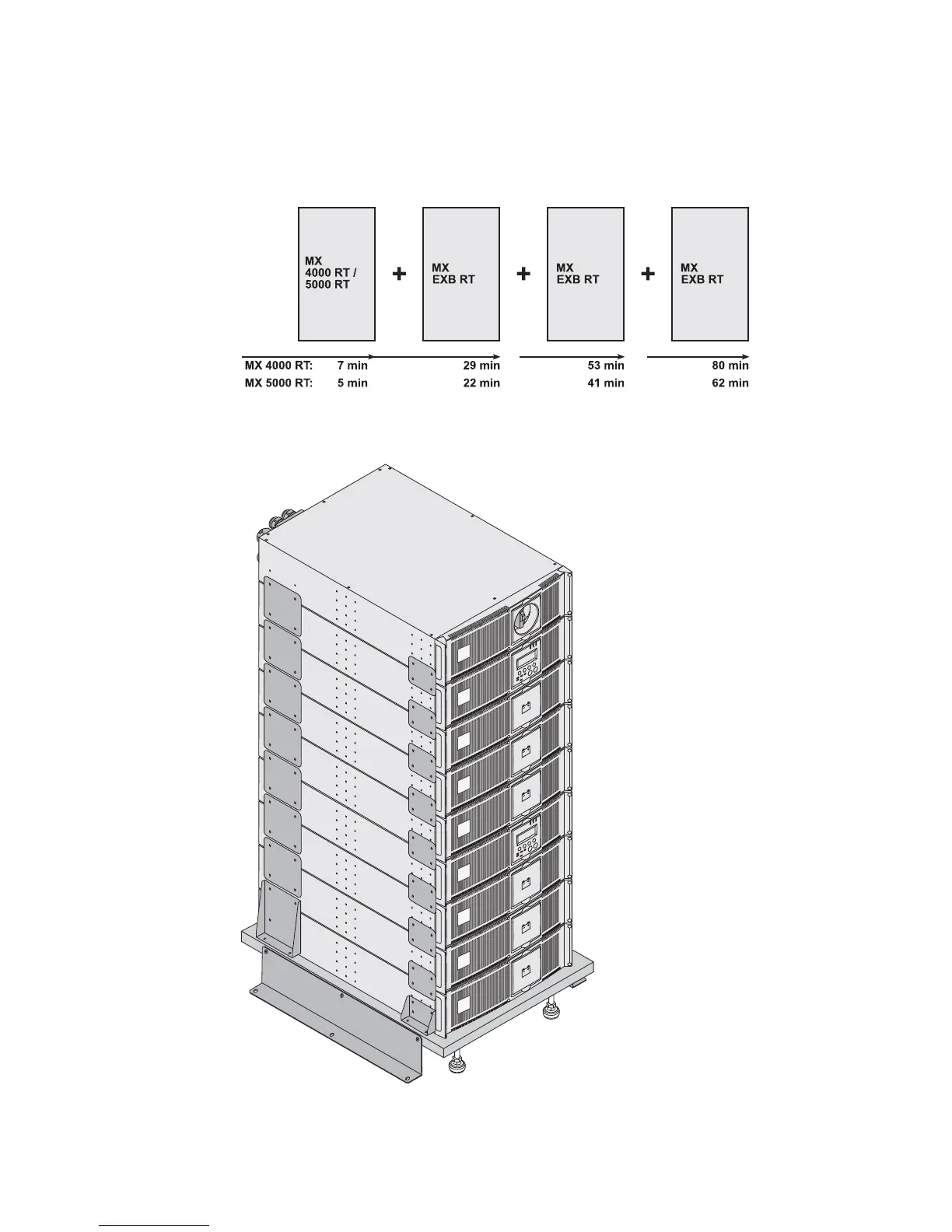 MX RT offers a standard backup time of 5/7 minutes at full load.
