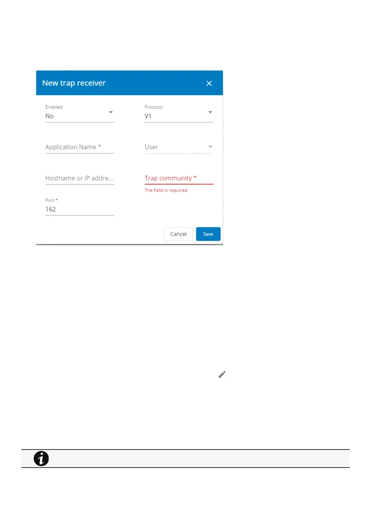Press the pen iconto edit trap receiver information and access to its settings: