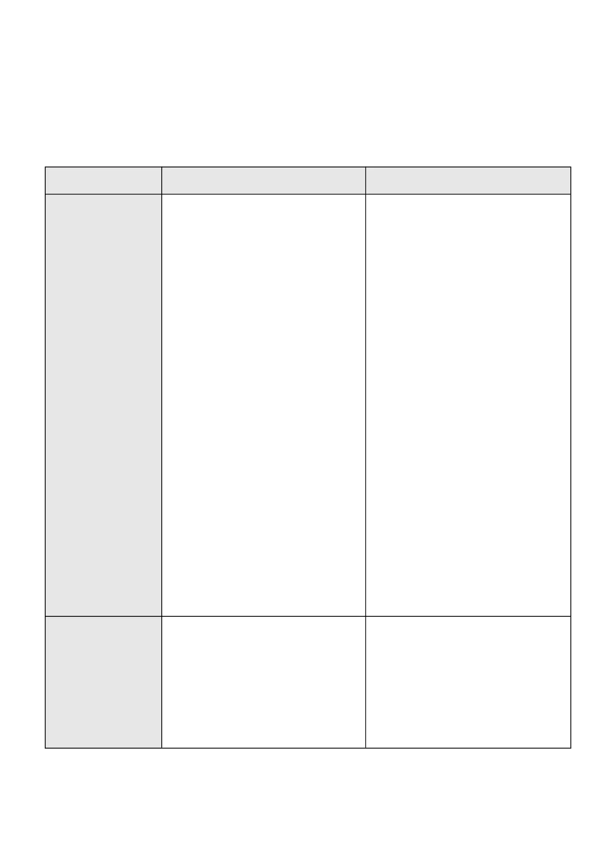 Default setting Possible parameters