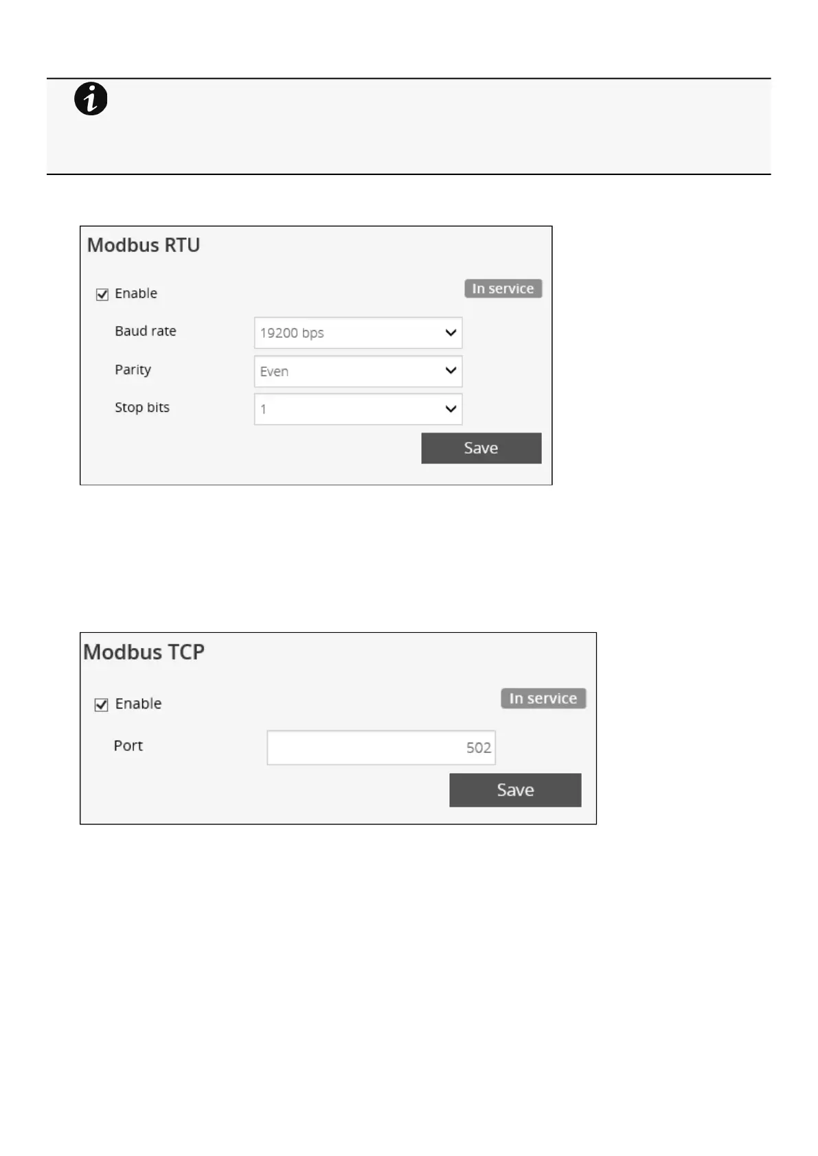 The followingModbus TCPsettings are configurable: