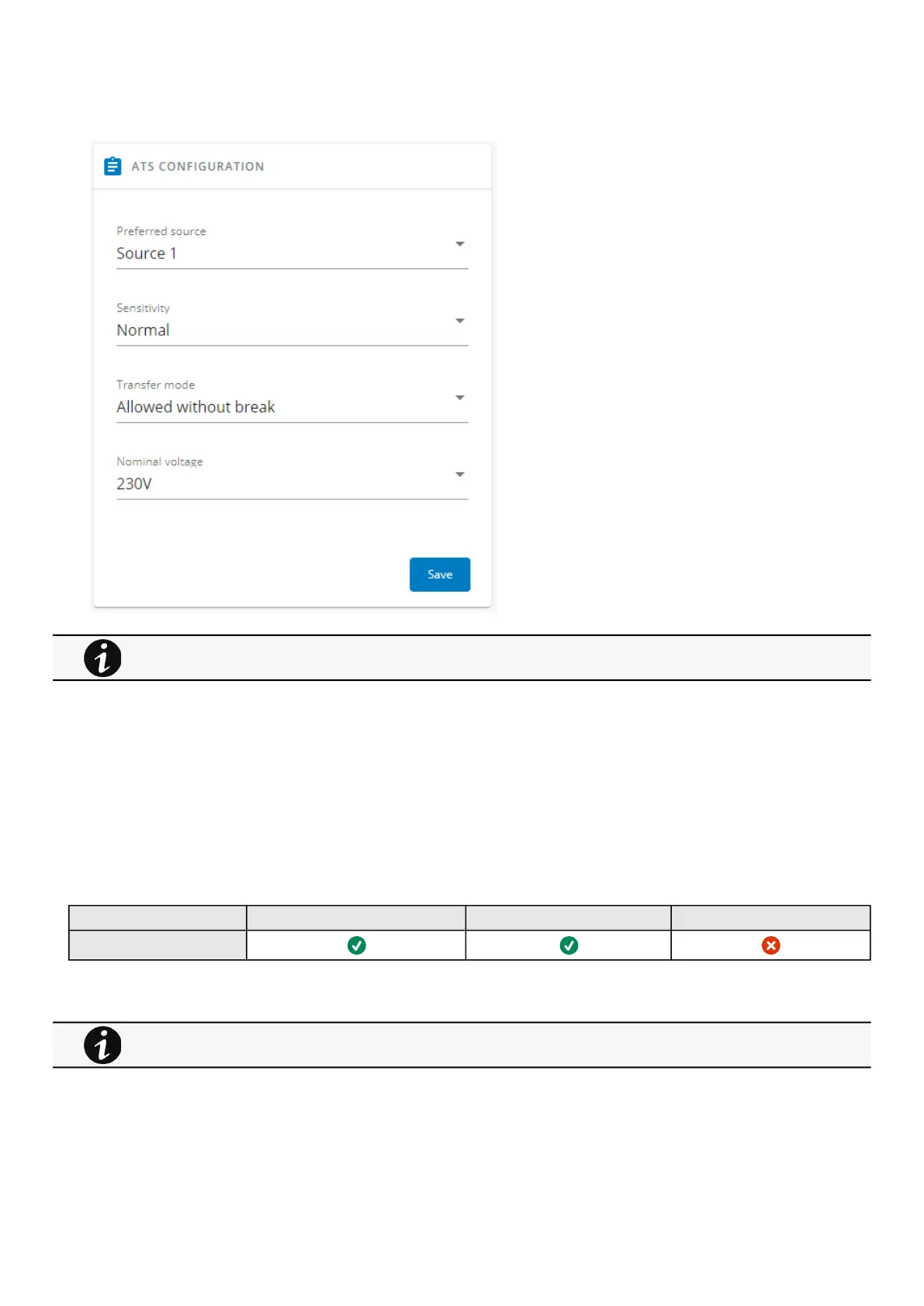 Transfer mode– To set the transfer mode between sources (Standard by default with no additional break even if sources are