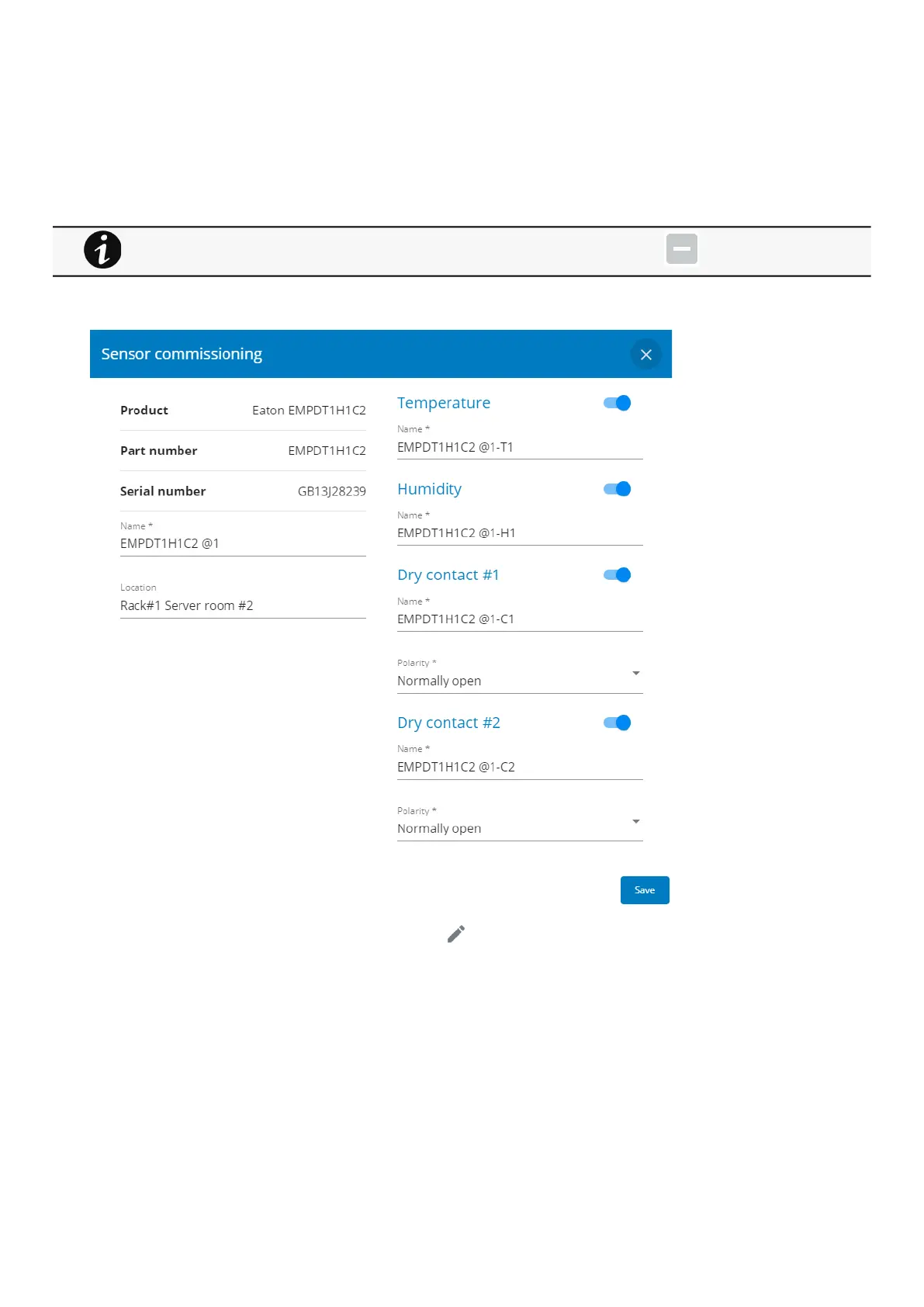 Press the pen logoto edit sensor communication information: