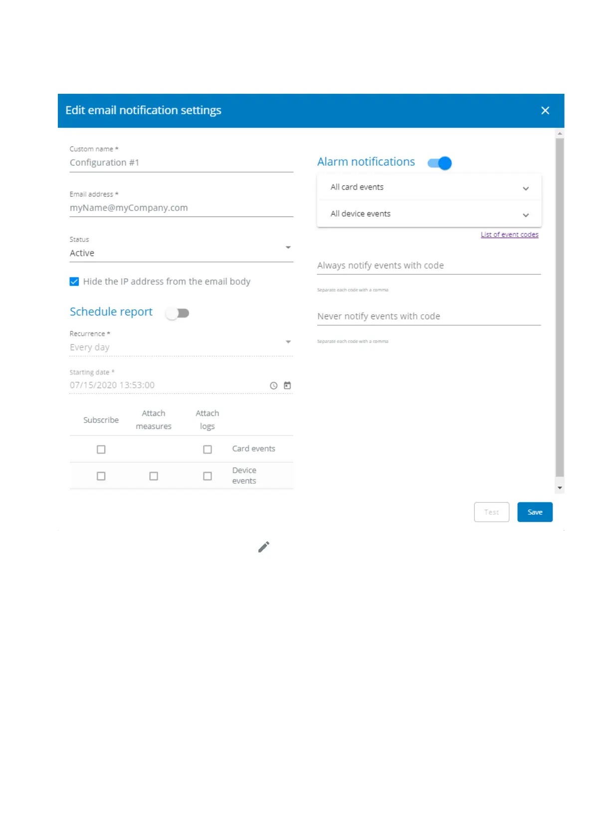 Press the pen iconto edit email sending configuration: