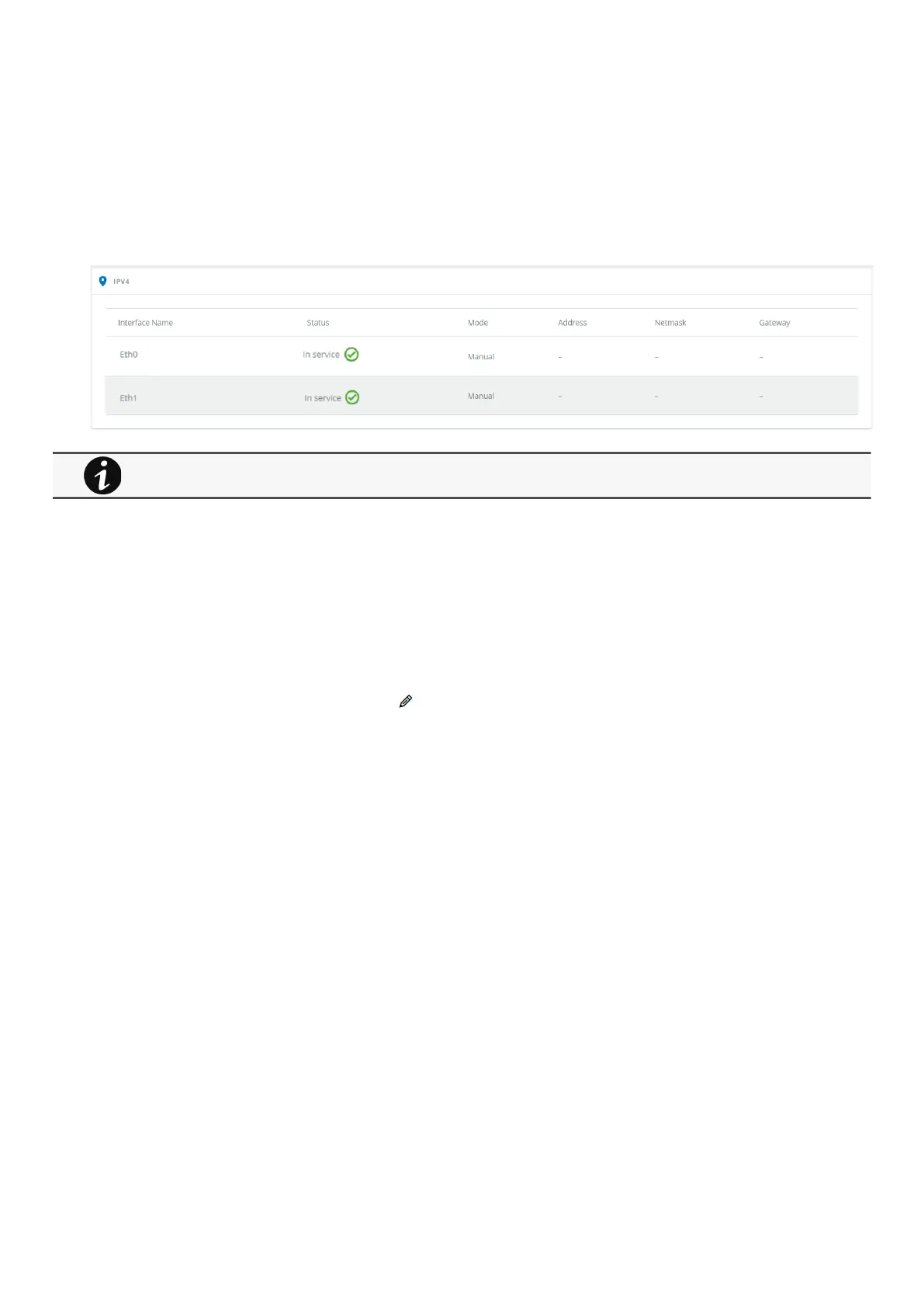 After a mouse over on the table, click the edit icon to access settings and configure the network settings for a dedicated