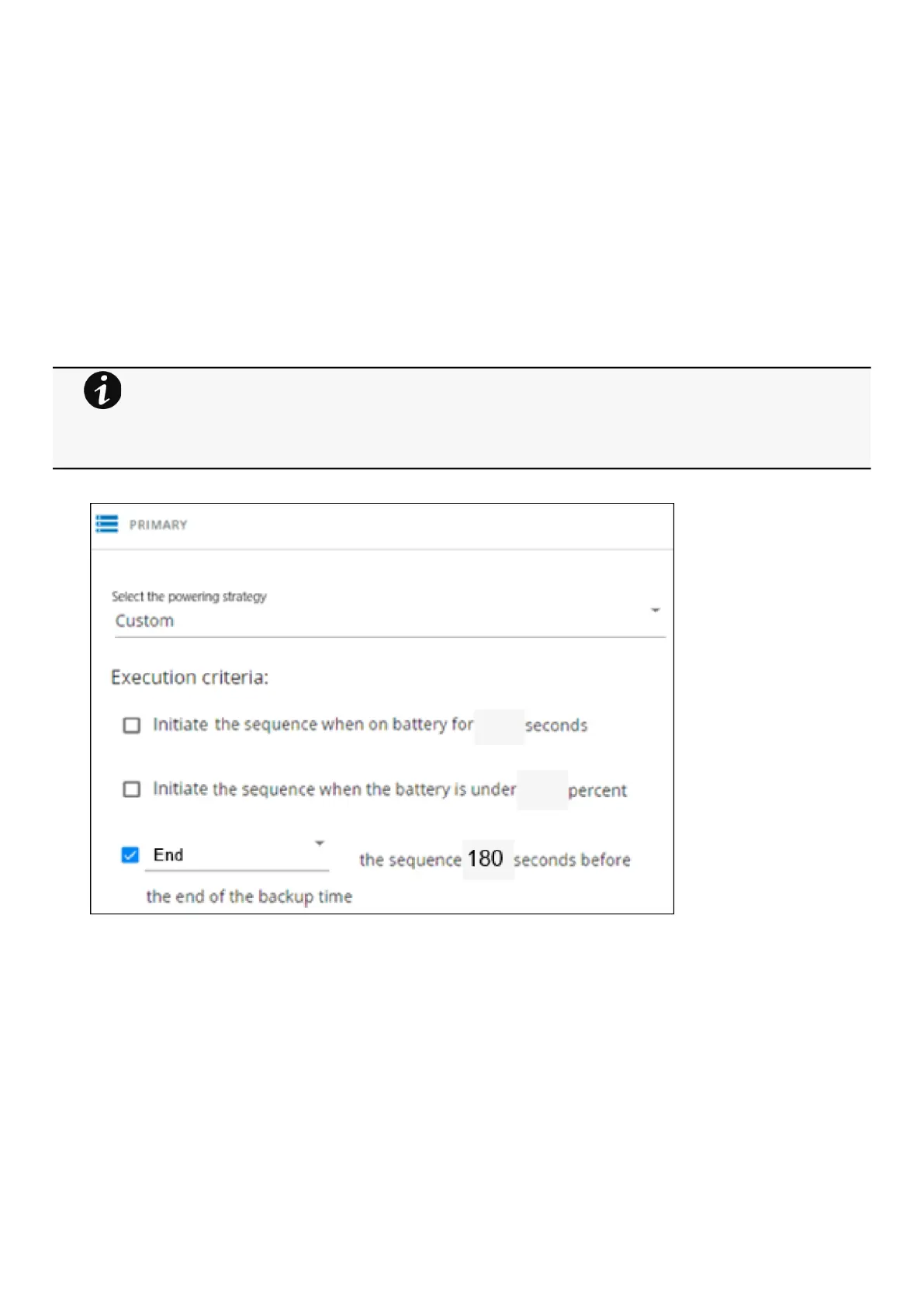2. Set Primary and Group 1 to:Customand set it to end shutdown sequence 180s before the end of backup time.