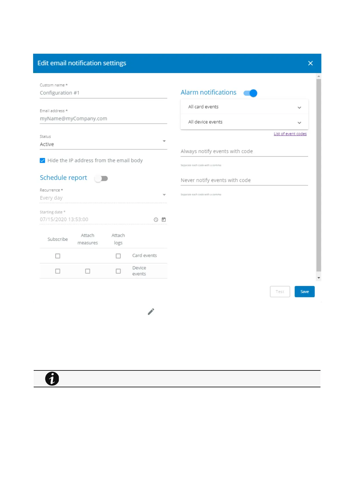 Press the pen iconto edit email sending configuration: