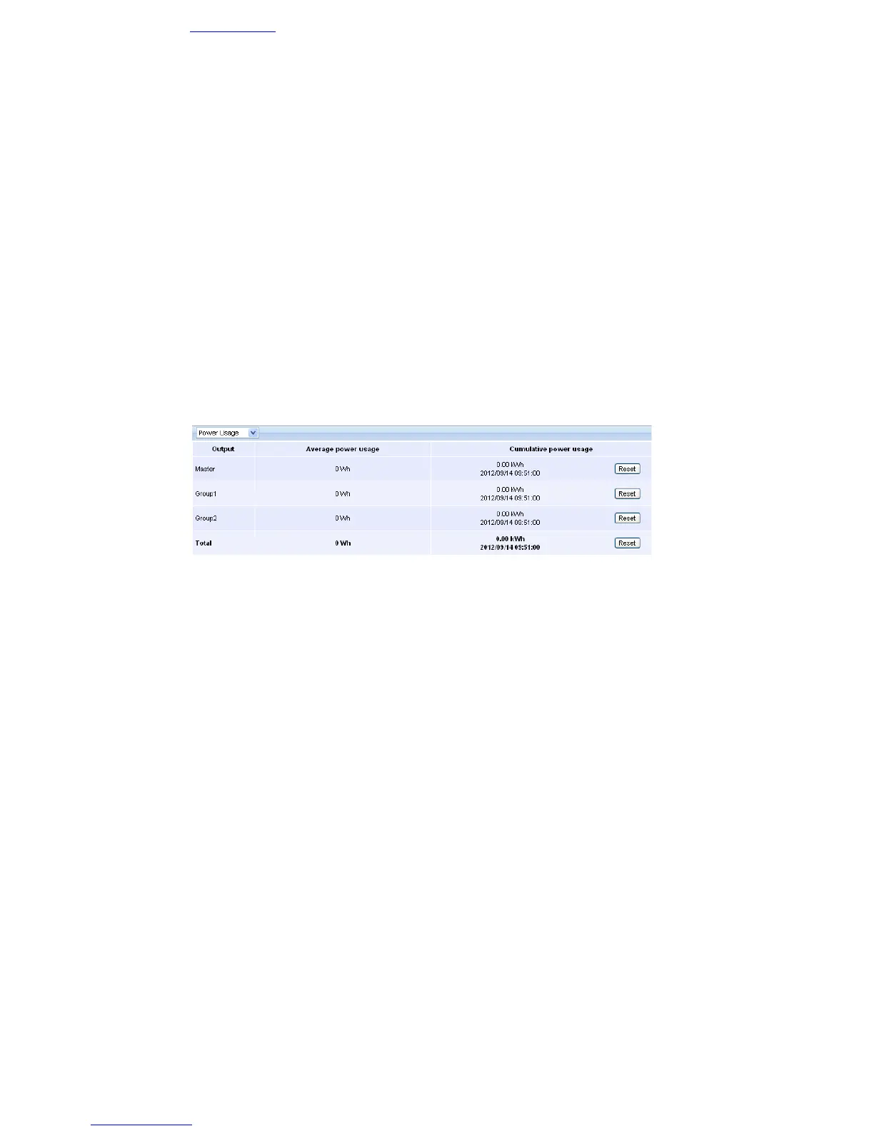 • Cumulative power usage: indicates the consumption cumulated of each output since the last reset. The
