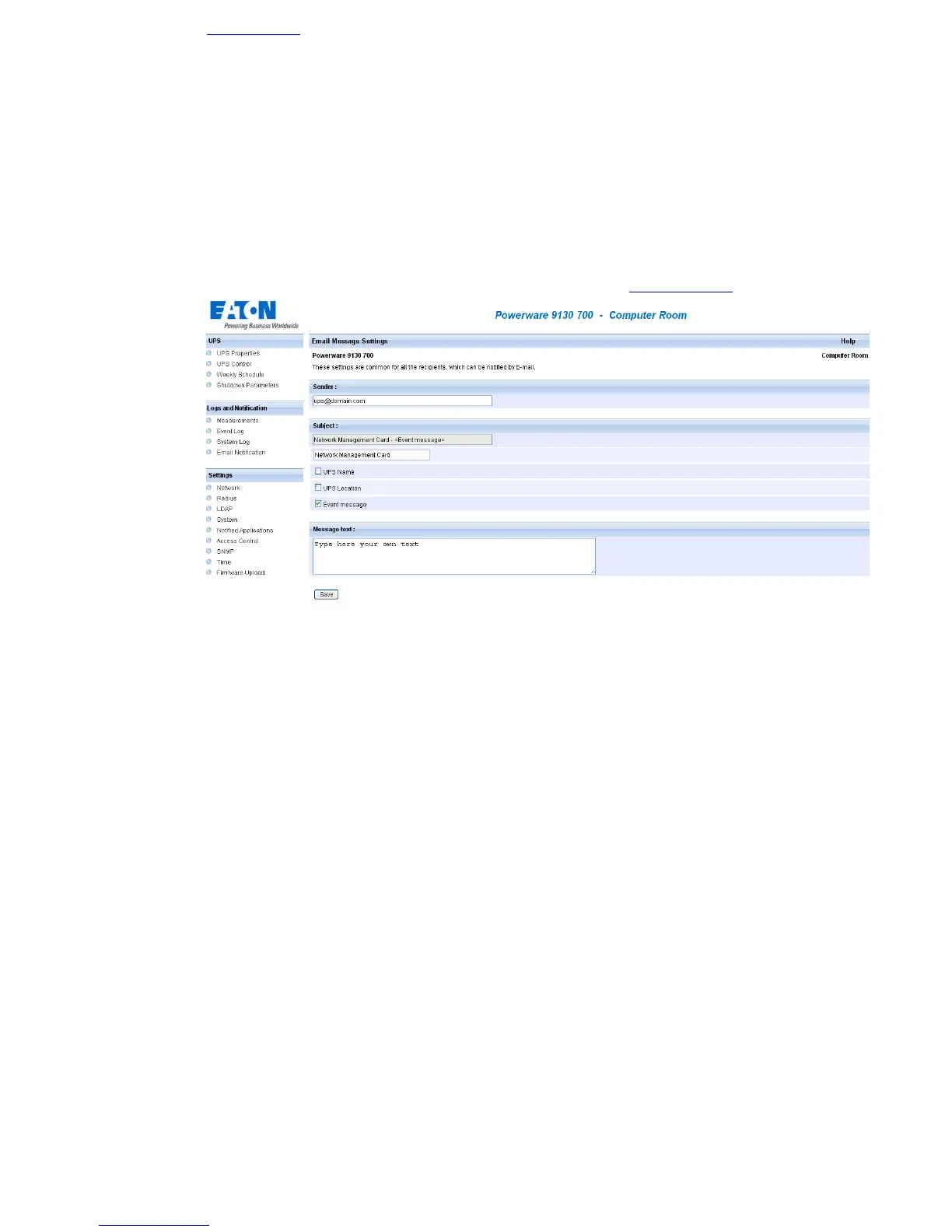 - Event message identifies the event generating the e-mail; it may or may not be selected.