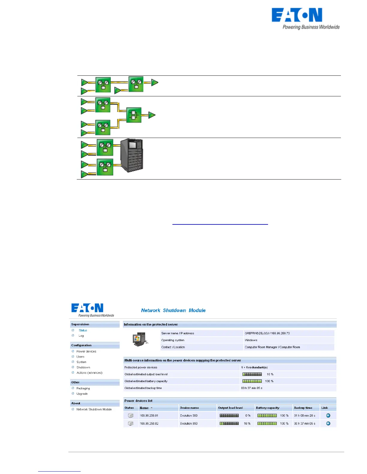 When several UPSs electrically power the computer hosting Network Shutdown Module, the main interface is