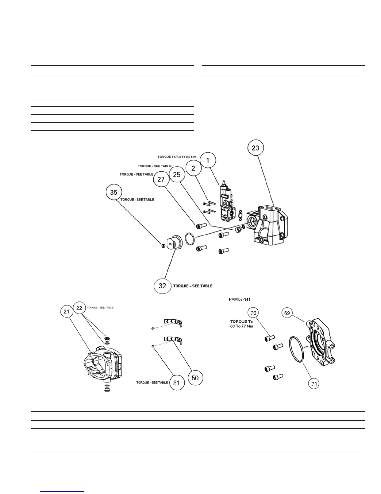 PVM 45/50 75 - 83 N.m 23 - 26 N.m 103 - 127 N.m 210 - 230 N.m