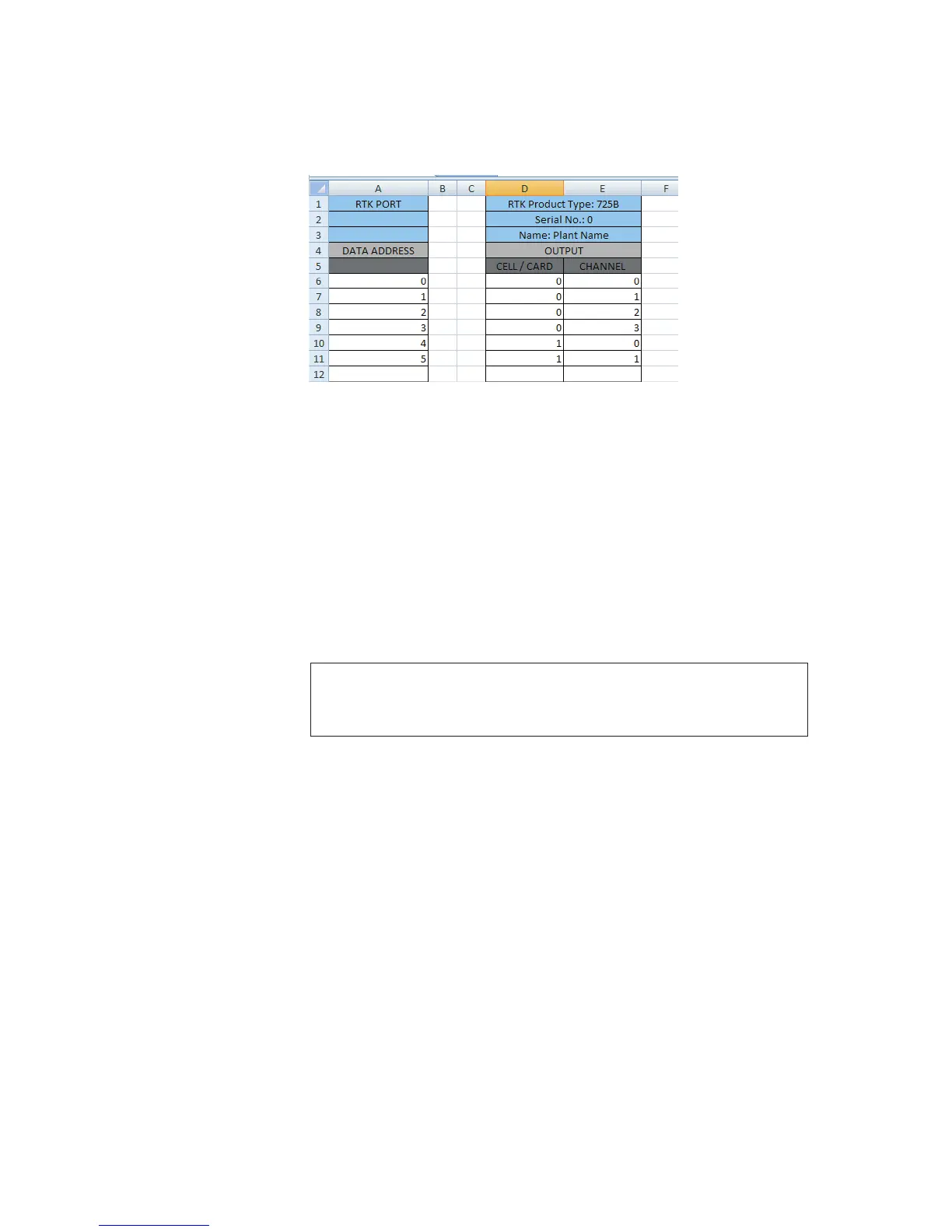 work in the same way as the Master but columns A and B show the PRTK 725B port register