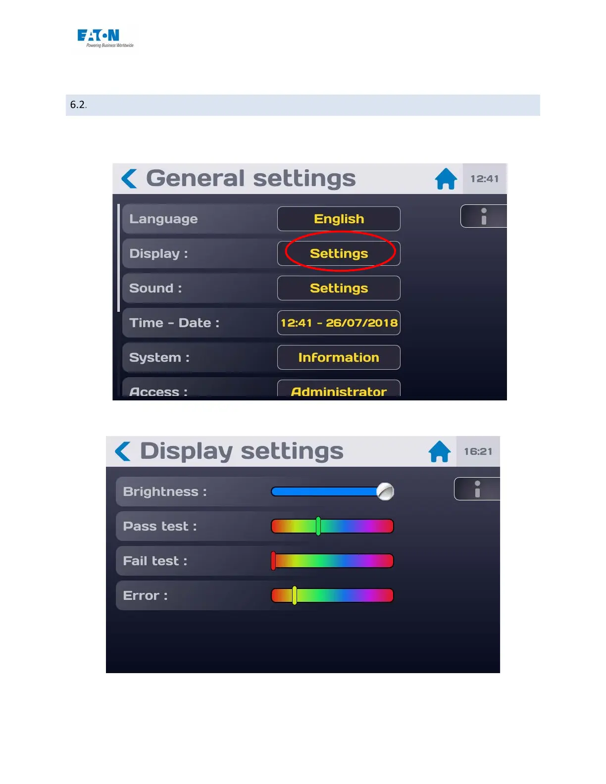 In the "General settings" menu press the “Settings” area of the "Display" line: