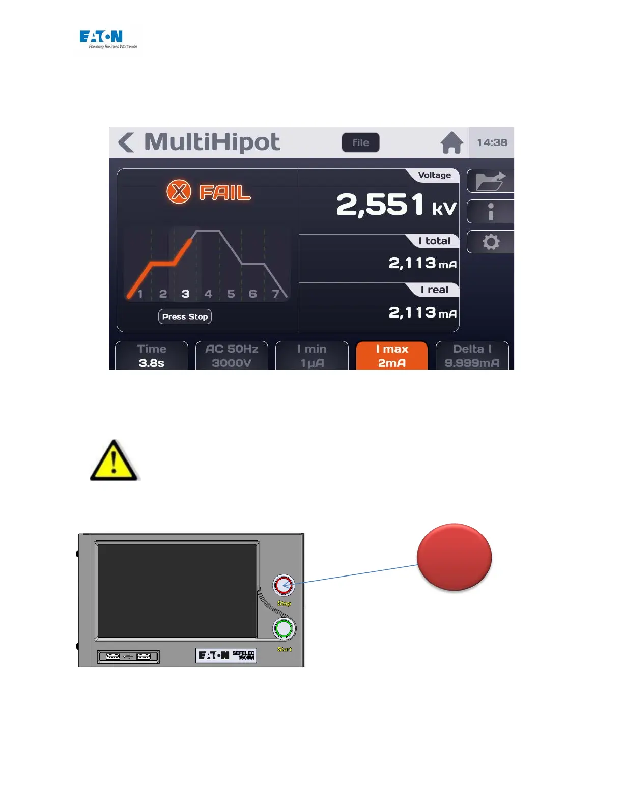 The coloured function key indicates the setting that caused the FAIL sanction of the measure-