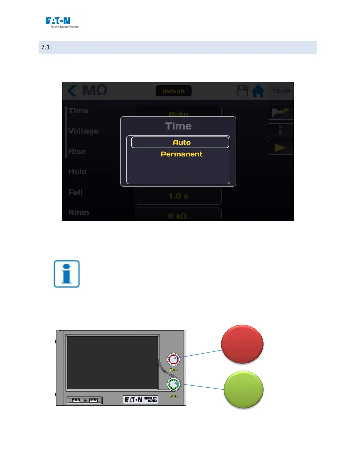 set point. The test is stopped if the user requests to stop the test by pressing the red button on