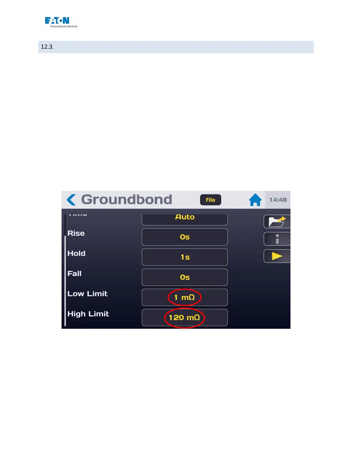 To access the High and Low threshold settings scroll the ground continuity settings screen to