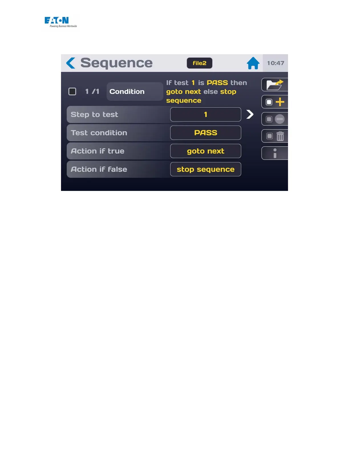 o Choose: Stop sequence (sequence stoppage), goto next (go to the next step), go-