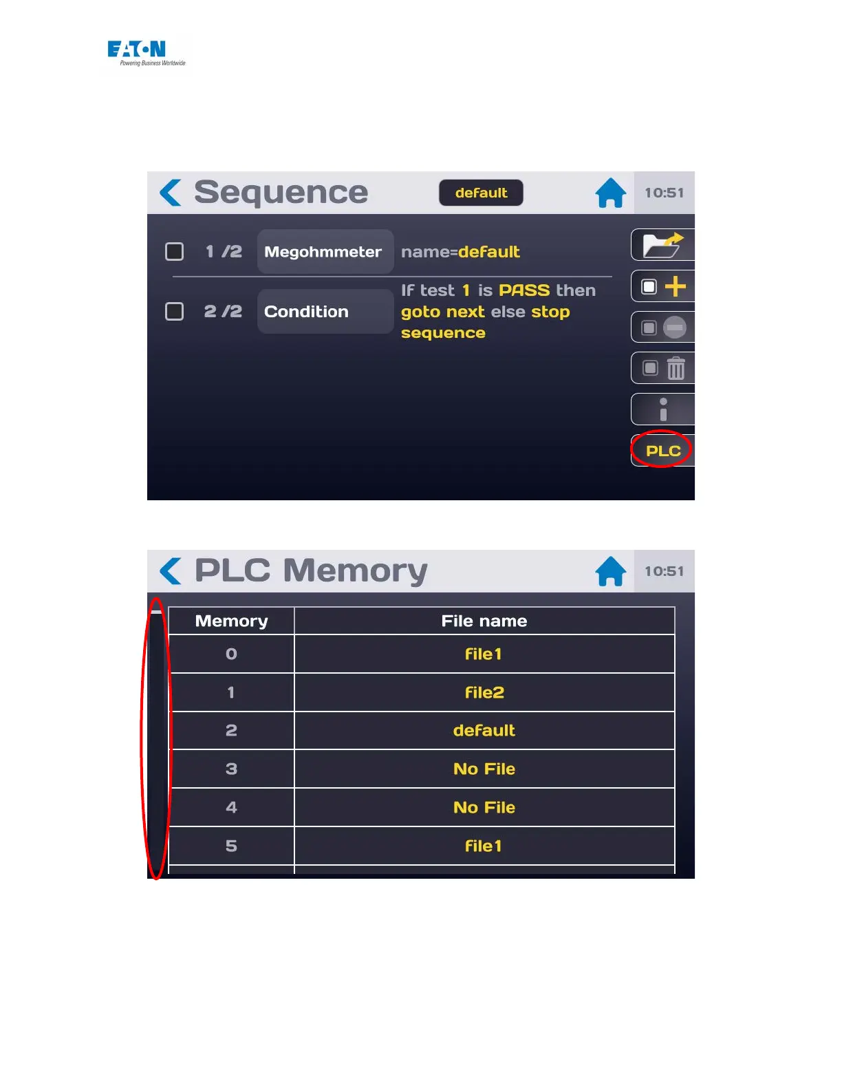 to the sequence menu (see Chapter 11 - Sequence mode) and press the PLC key (the PLC in-