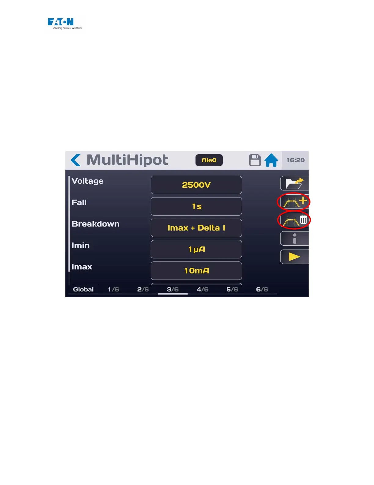 The lower part of the screen displays the different phases activated (1/n, 2/n, …) as well as a