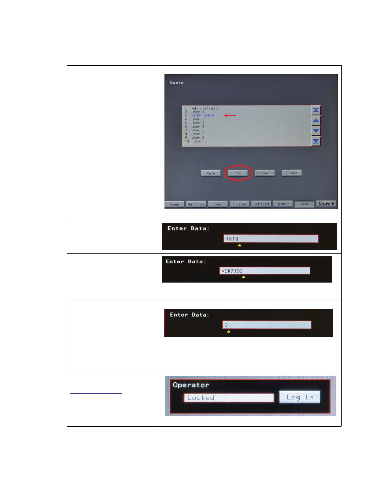 9. Touch Password on Users screen.