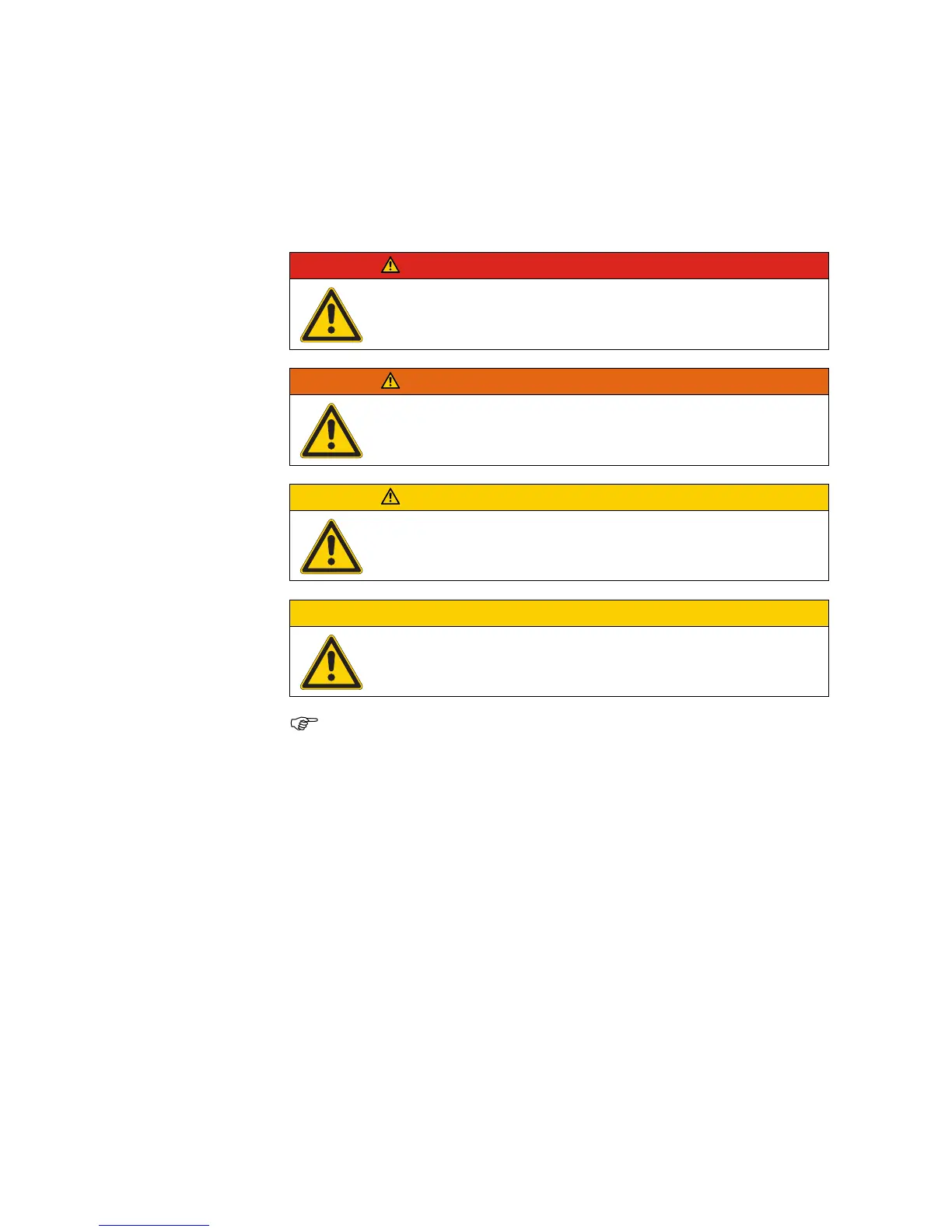 The danger symbol used and the text indicate the actual danger and the related preventative measures.