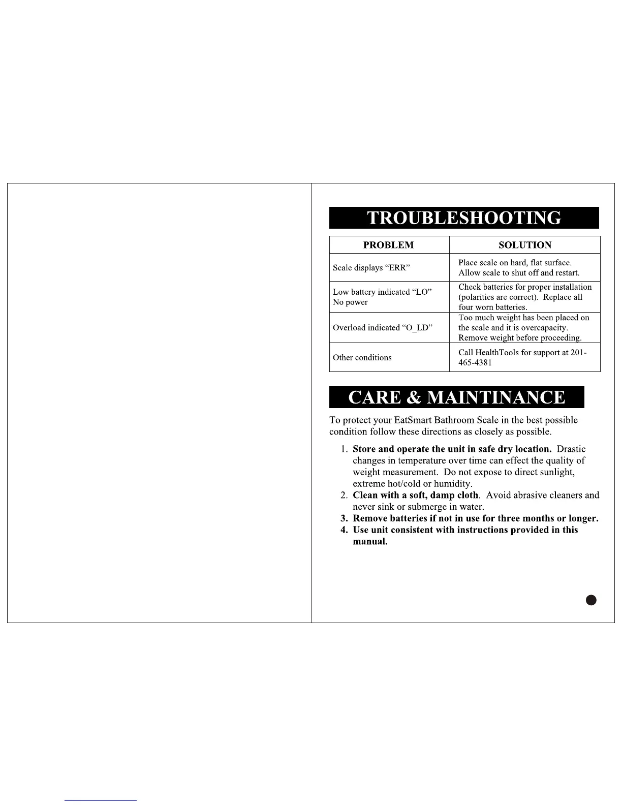 eatsmart Precision Pro - Troubleshooting; Scale Displays ERR; Low Battery; No Power; Overload Indication