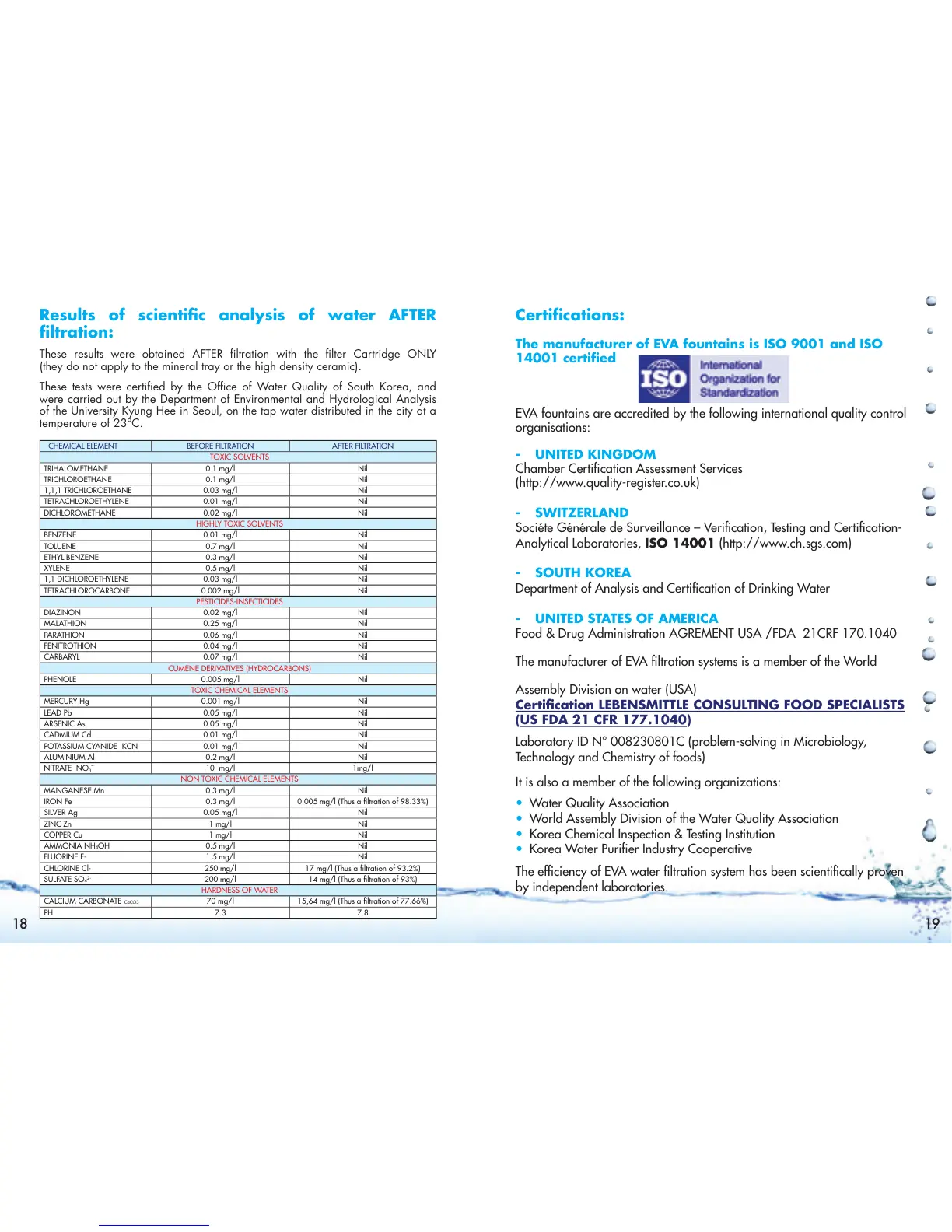 These results were obtained AFTER filtration with the filter Cartridge ONLY