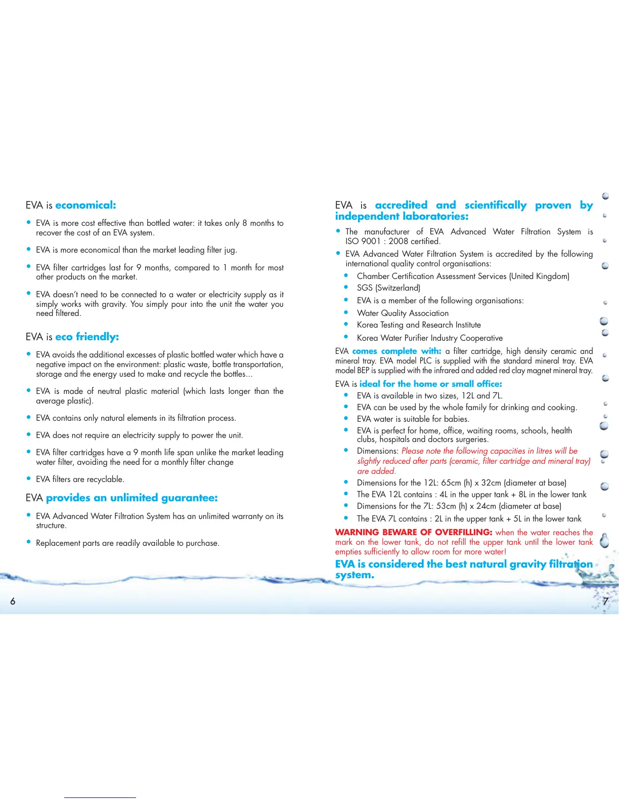 EVA comes complete with: a filter cartridge, high density ceramic and