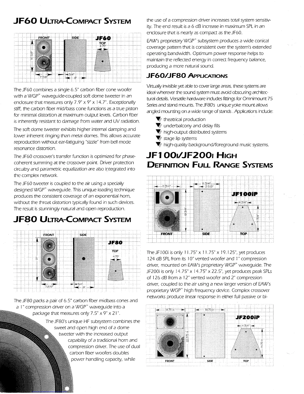EAW JF100 - JF60 and JF80 Ultra-Compact Systems; JF60 Ultra-Compact System; JF80 Ultra-Compact System; JF60;JF80 Applications