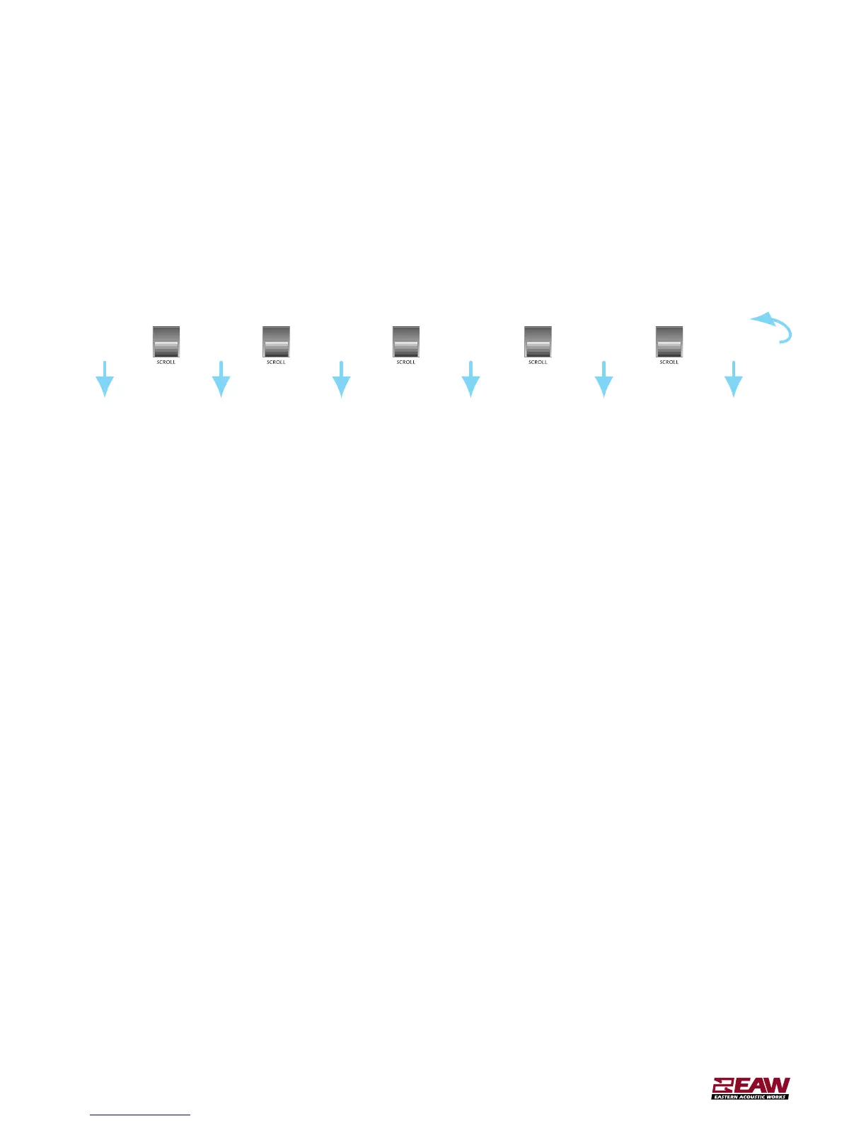 1. Once the desired configuration is loaded,use the SCROLL button to move through inputs and outputs. Use the UP/DOWN buttons to select the desired