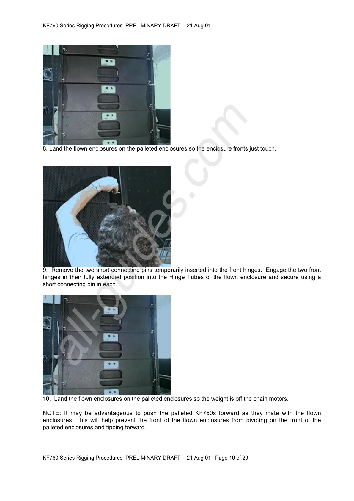 10. Land the flown enclosures on the palleted enclosures so the weight is off the chain motors.