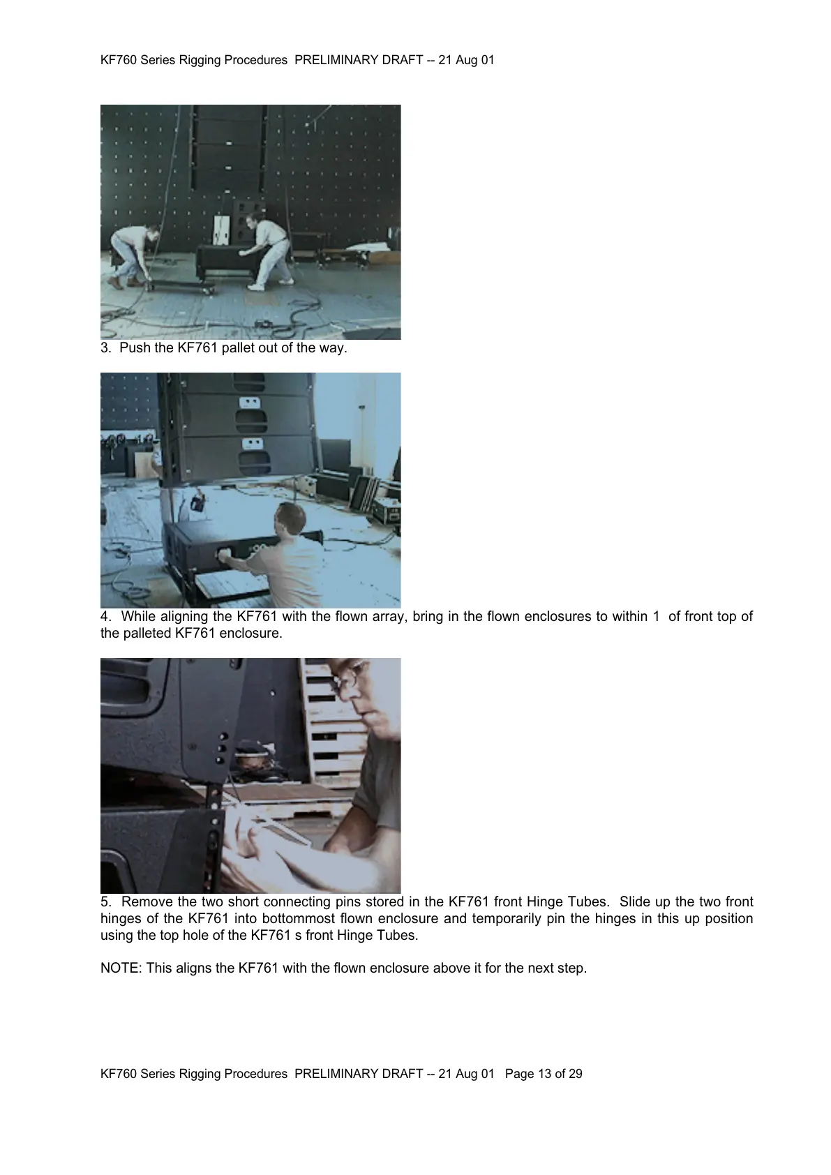 4. While aligning the KF761 with the flown array, bring in the flown enclosures to within 1 of front top of