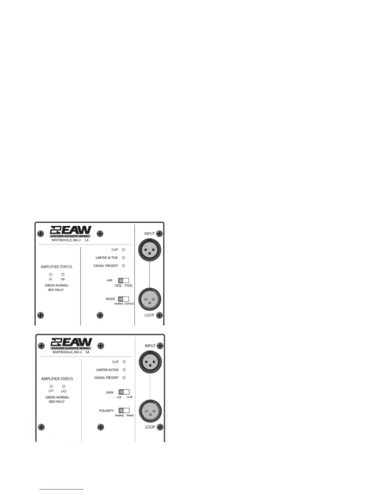 Usa queste regolazioni nominali per gli switches del pannello posteriore.