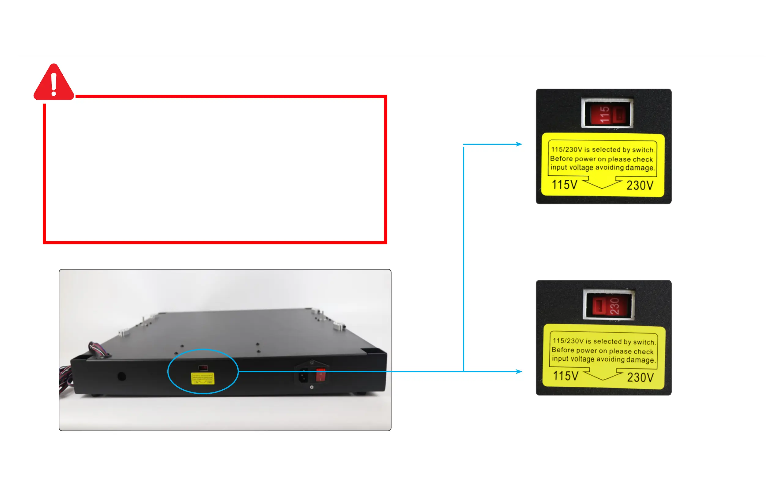 第⼀次打开电源前,必须检查电源电压是否符合当地标准!!!