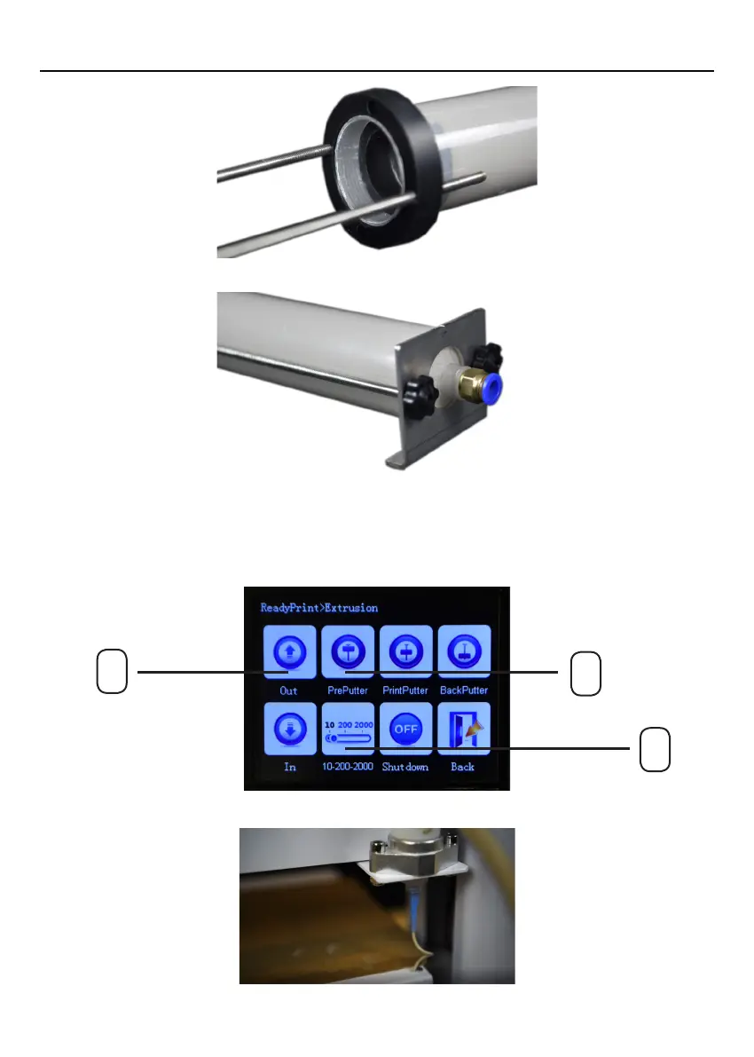 the "In" option, the electric putter pushes the clay forward, the clay enters and exits the